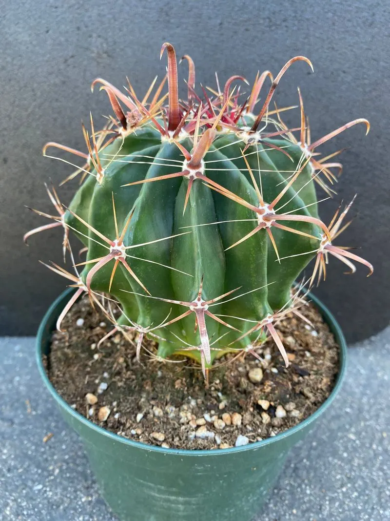 The devil’s tongue barrel cactus is a bold and formidable succulent, recognized for its thick body and long, red spines. Its dramatic appearance makes it a standout in any desert landscape.