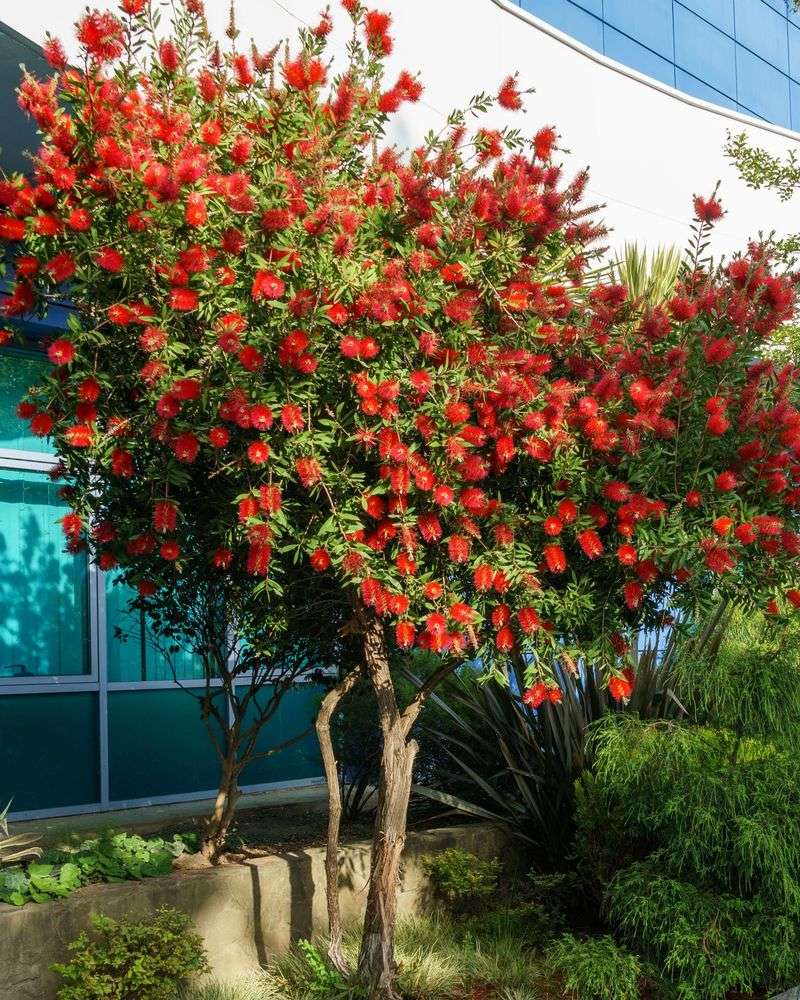 With its striking red, brush-like flowers, the bottlebrush is a magnet for hummingbirds and bees. This hardy tree boasts vibrant blooms that look stunning against its evergreen foliage. Originating from Australia, it thrives in sunny positions and well-drained soil. Minimal watering needs make it an ally in water conservation efforts. Regular pruning helps maintain its shape and encourages a profusion of flowers. The bottlebrush is a bold statement piece, bringing both color and ecological benefits to your garden, thriving beautifully in a drought-conscious landscape.
