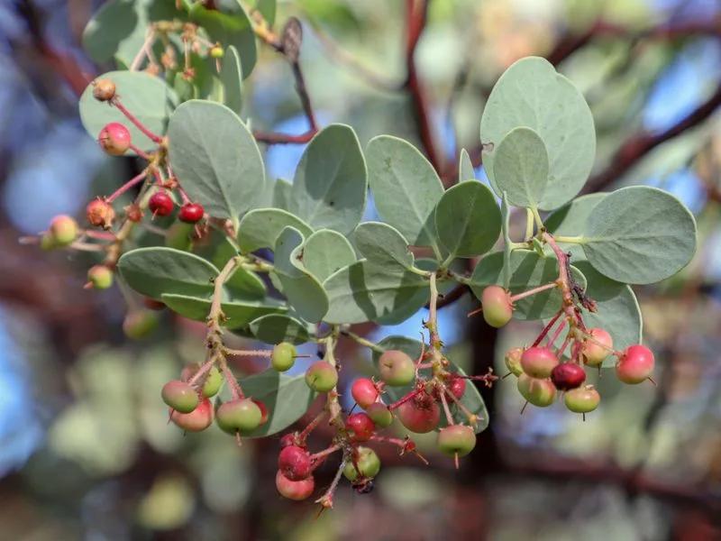 Manzanita trees are admired for their distinctive red bark and evergreen leaves. Even in winter, their twisted branches create a captivating silhouette. This tree thrives in arid conditions, making it ideal for water-wise gardens. The smooth bark is not only visually appealing but also provides a tactile experience. As a native to the western United States, it supports local ecosystems, offering nectar and shelter for wildlife. Its striking appearance and drought tolerance make it a valuable addition to landscapes aiming for a balance of beauty and sustainability.
