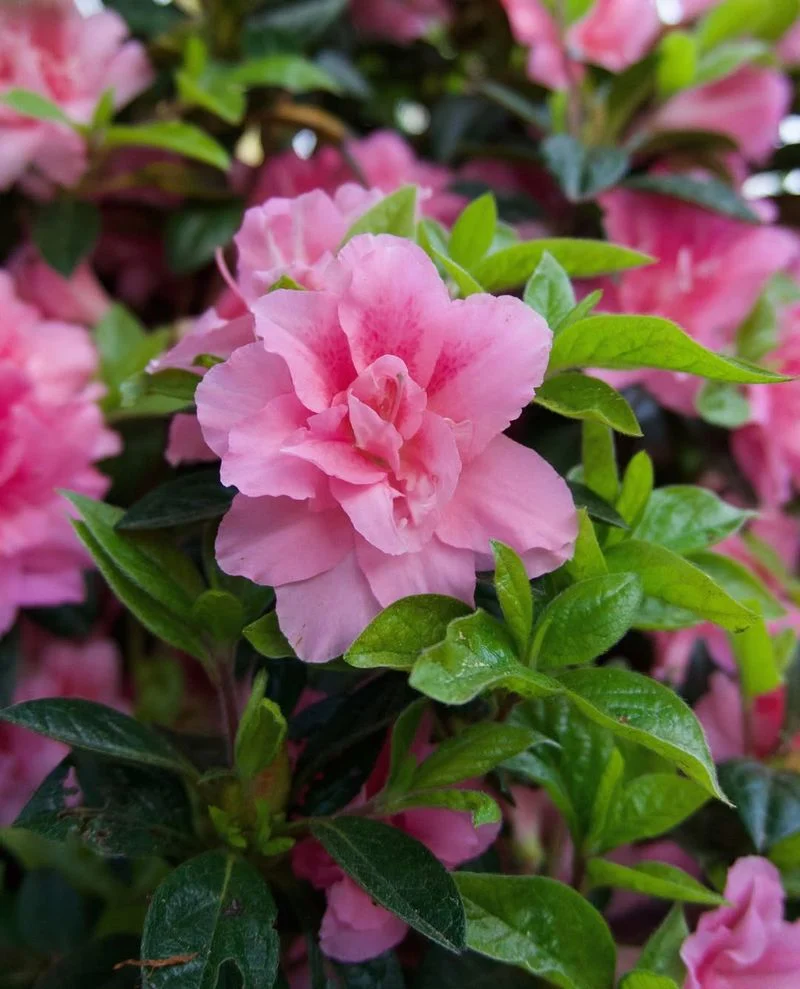Rhododendrons serve as a sturdier alternative. These evergreens can withstand more moisture while still offering a vibrant display.
