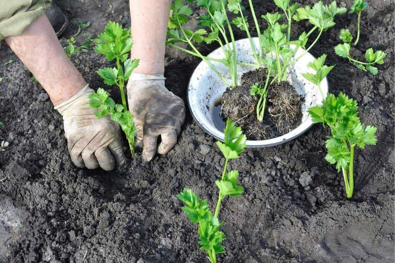 Lift each seedling carefully, preserving the root structure, and plant them about 8 inches apart. This spacing allows for proper air circulation and growth. Transplant on a cloudy day or in the late afternoon to reduce transplant shock, giving your young celery the best start outdoors.