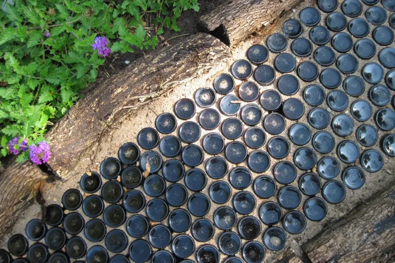Bottle caps, often overlooked, can pave the way to a unique garden pathway. Collect caps in various colors, and use them to create vibrant walkways.