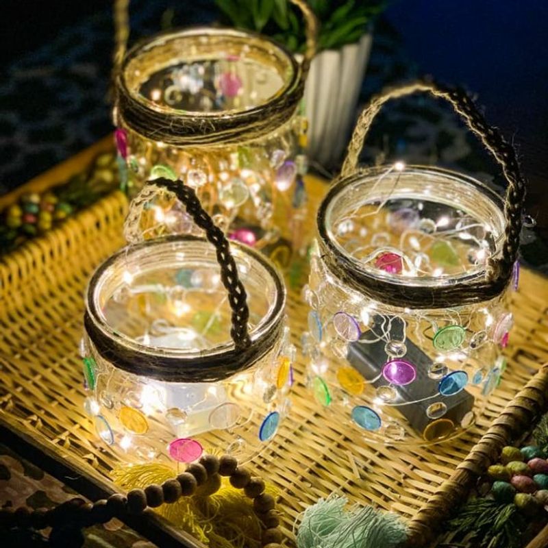 Hang them from trees or line them along pathways for a magical evening glow. Each jar reflects light beautifully, adding a touch of romance to the outdoor setting.