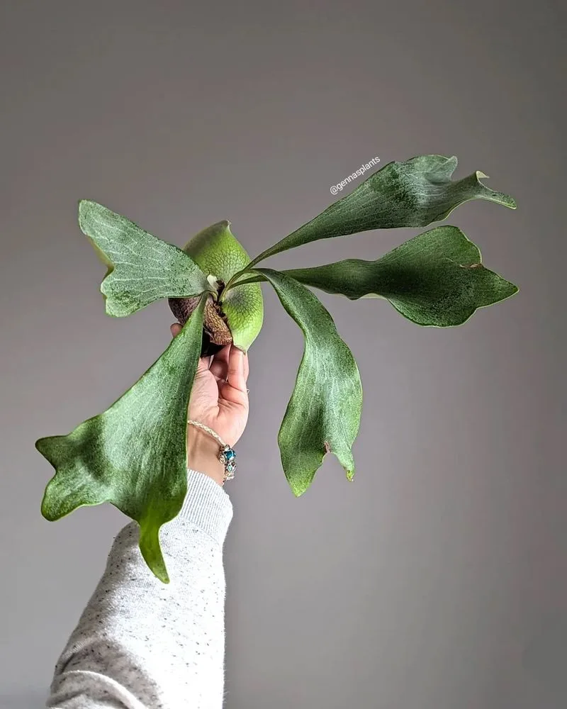 Evoking the grandeur of a deer’s antlers, the Staghorn Fern is a true showpiece. Its fronds create dramatic silhouettes on walls or mounted displays. Unlike typical ferns, it thrives as an epiphyte, often growing on other plants or surfaces.