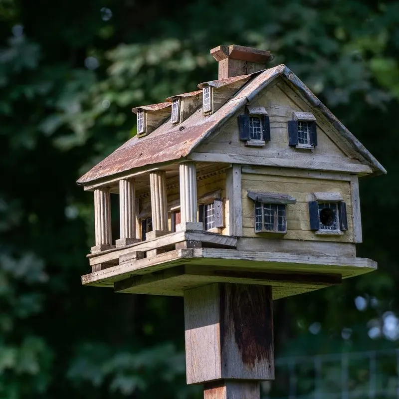 A village of birdhouses turns your garden into a haven for birds. Painted in different colors and perched on poles or hanging from trees, they not only provide shelter for birds but also add a playful element to your garden decor. This decoration invites nature in, allowing you to enjoy the cheerful songs of your feathered friends.