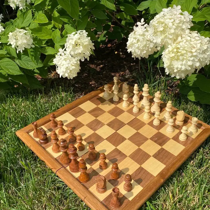 Engage guests with an interactive garden chess set. Life-sized pieces on a checkered board invite playful competition and add a sophisticated touch. This garden game encourages social interaction, making it a perfect addition for gatherings and garden parties.