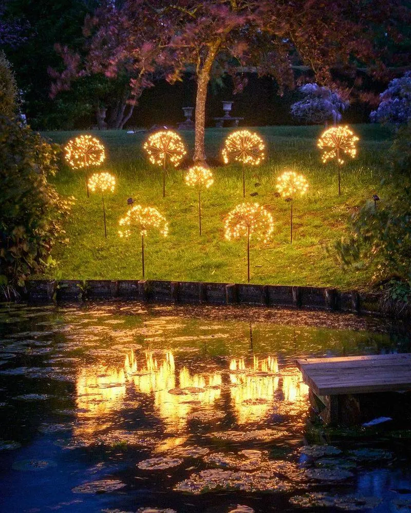 Floating lily pads with LED lights offer a unique twist on water features. Placed in a pond, they softly illuminate the water, creating captivating reflections at night. These lily pads are not only beautiful but add an enchanting glow that enhances the peaceful atmosphere of your garden’s water elements.